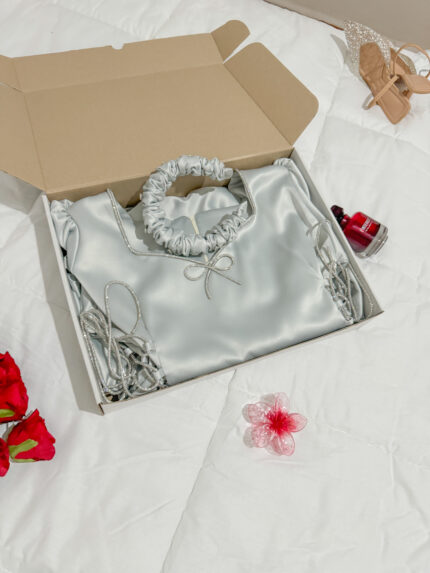 La robe nihel un modèle très féminin et élégant Taille mannequin  : Taille 1 Accessoire : serre tête Tissu : Satin haute quality
