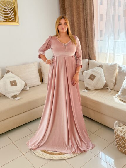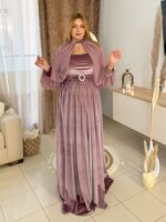 La deuxieme piece présente une robe longue décorée avec un joli galon