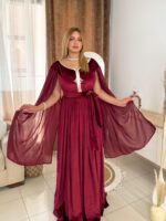 Rahaf une robe longue en velours , à la coupe fluide et élégante.
